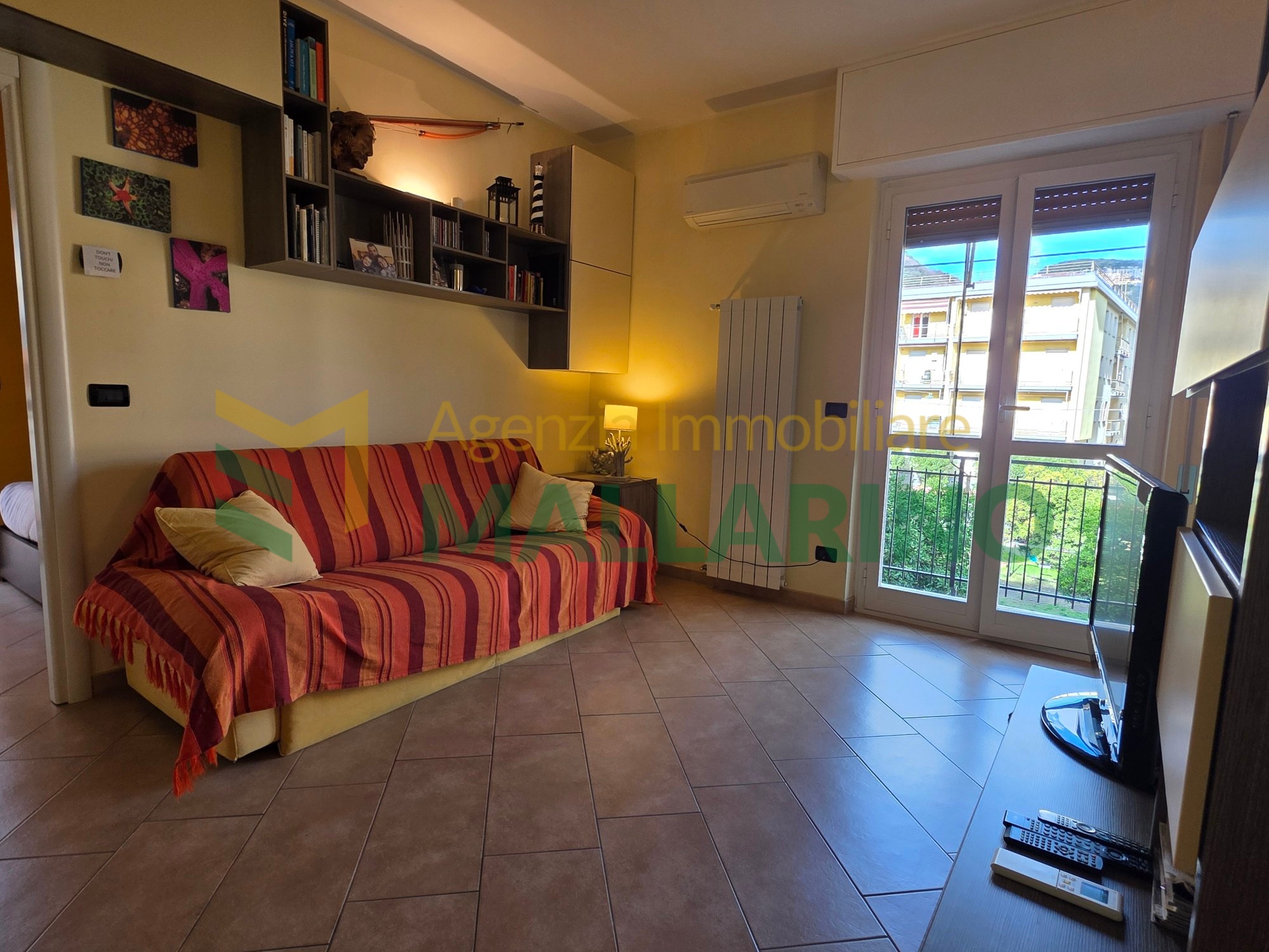 FINALPIA: Vendesi trilocale ubicato in Vico Melogno, posto al primo piano con ascensore dopo rampa di scale, composto da ingresso su soggiorno con angolo cottura, camera, cameretta, bagno e balcone.